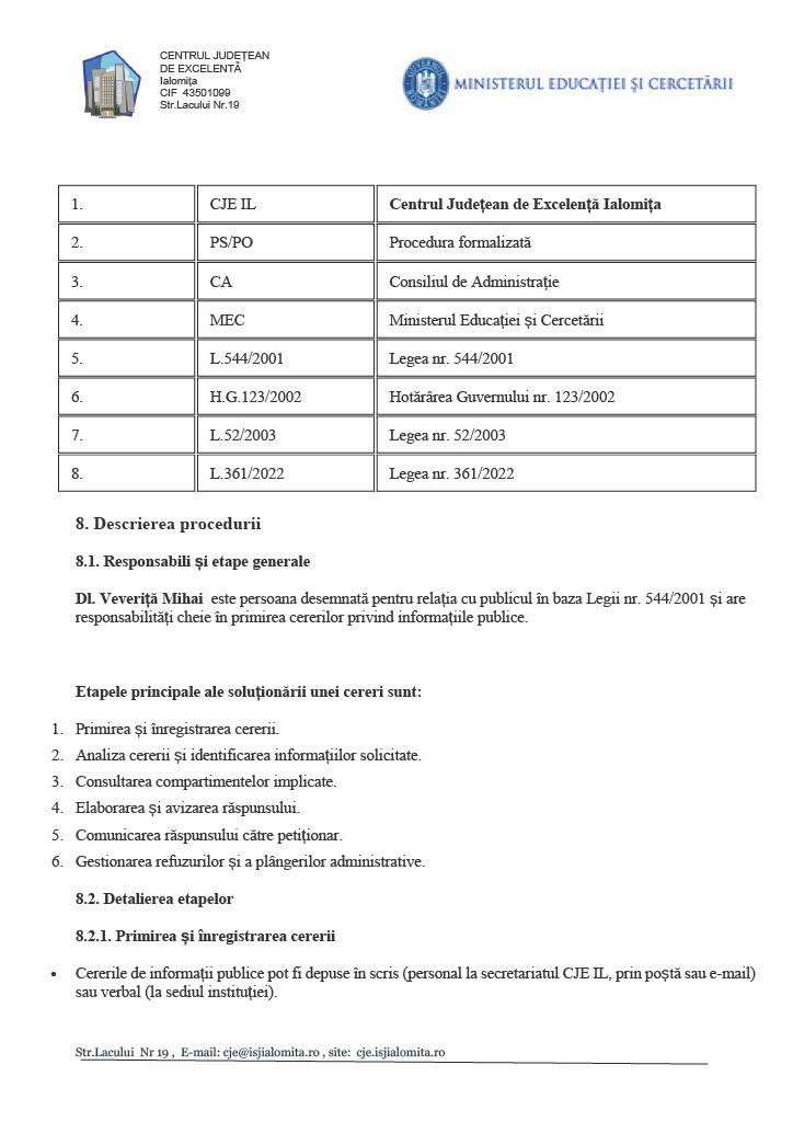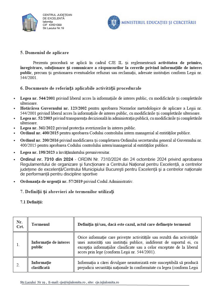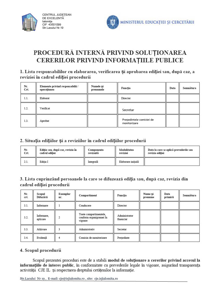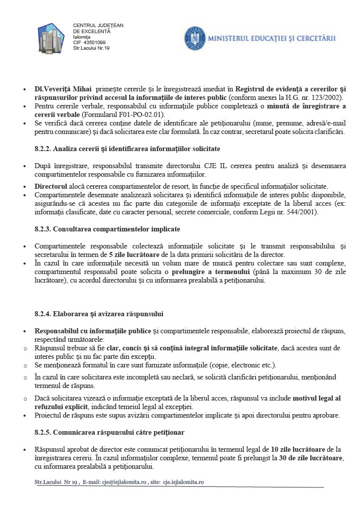 PROCEDURĂ INTERNĂ PRIVIND SOLUȚIONAREA CERERILOR PRIVIND INFORMAȚIILE PUBLICE