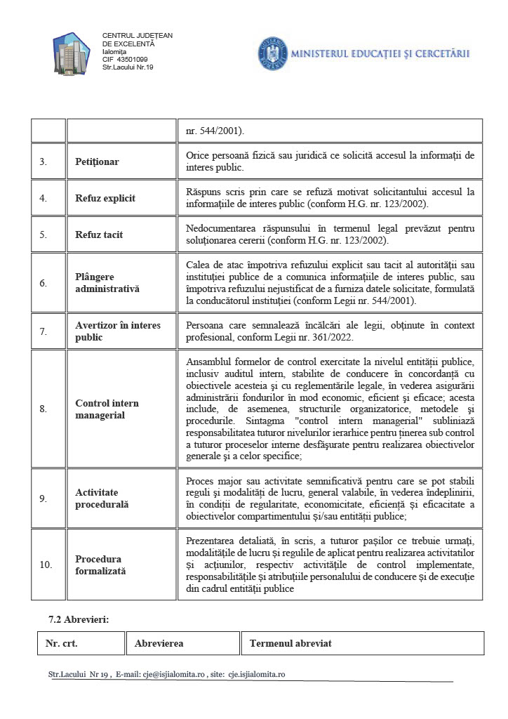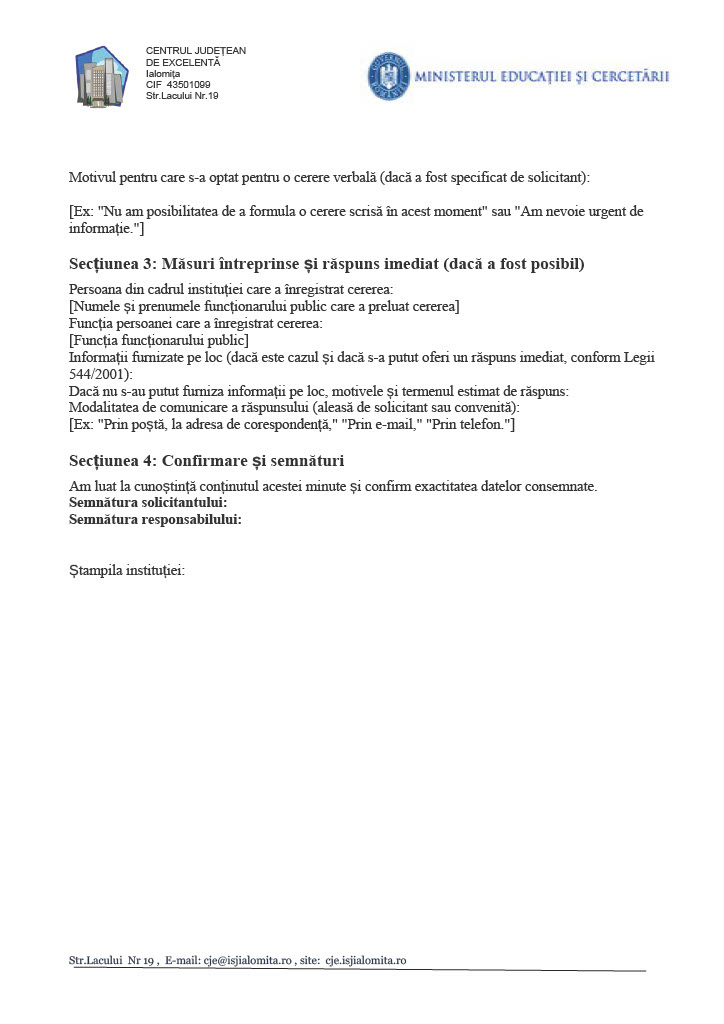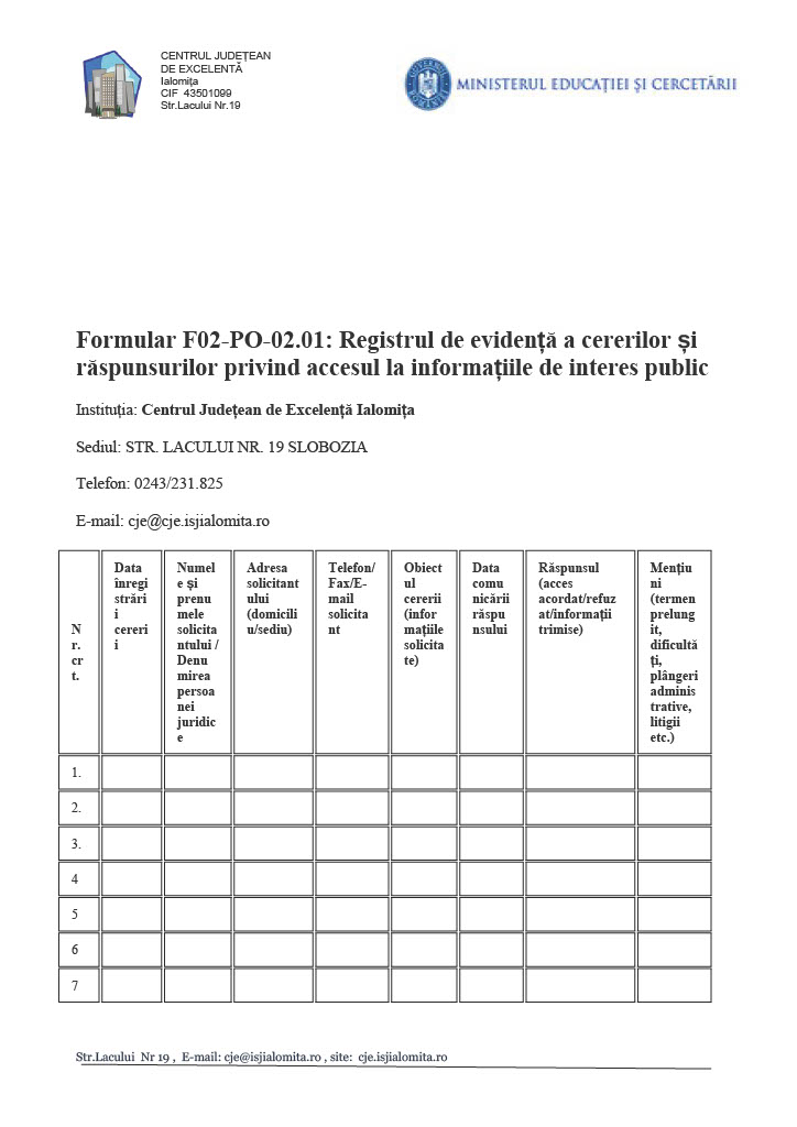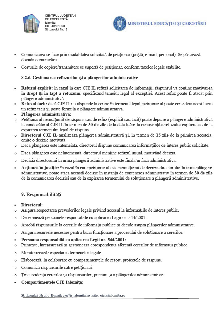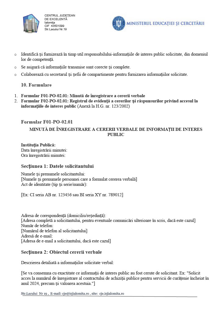 PROCEDURĂ INTERNĂ PRIVIND SOLUȚIONAREA CERERILOR PRIVIND INFORMAȚIILE PUBLICE