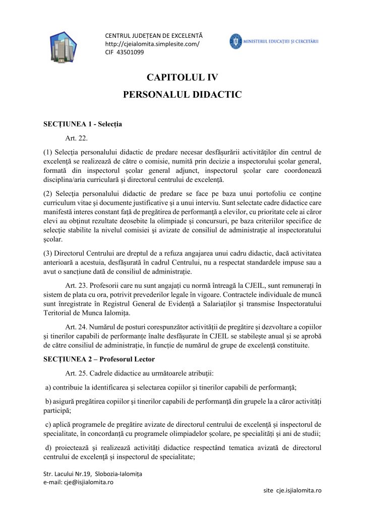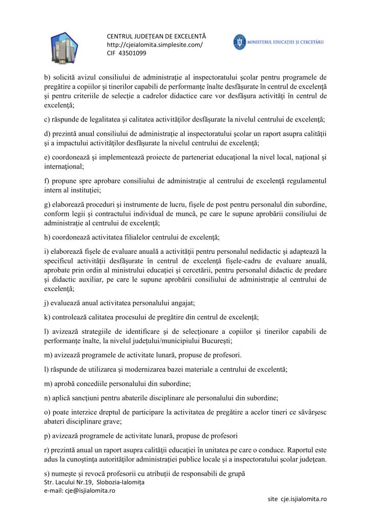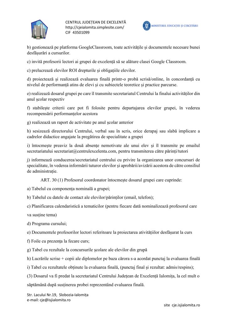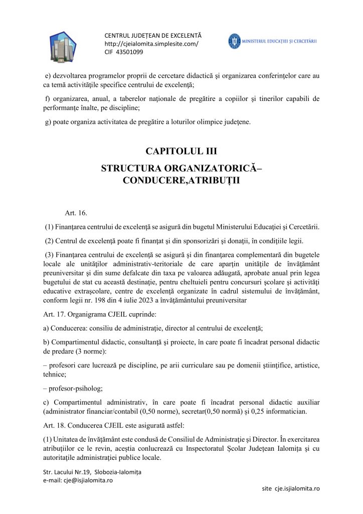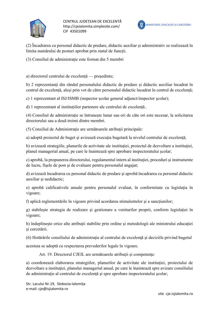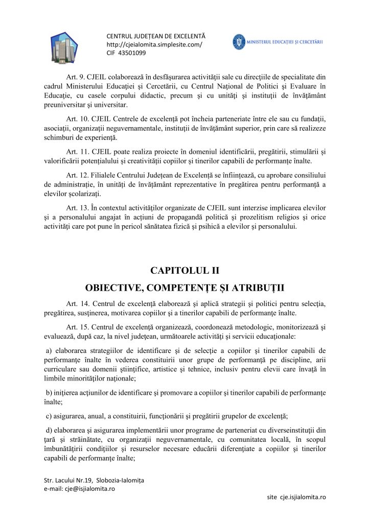 Regulamentul de organizare şi funcţionare a Centrului Judeţean de Excelenţă