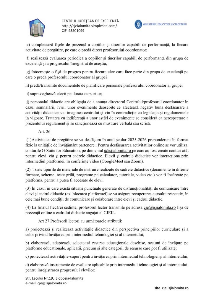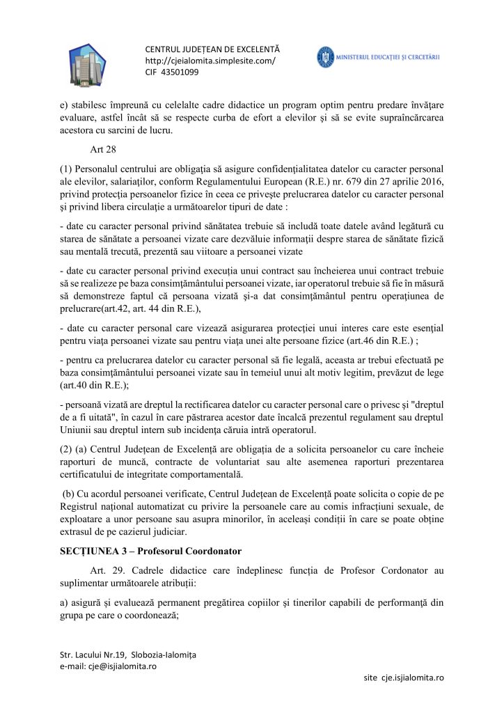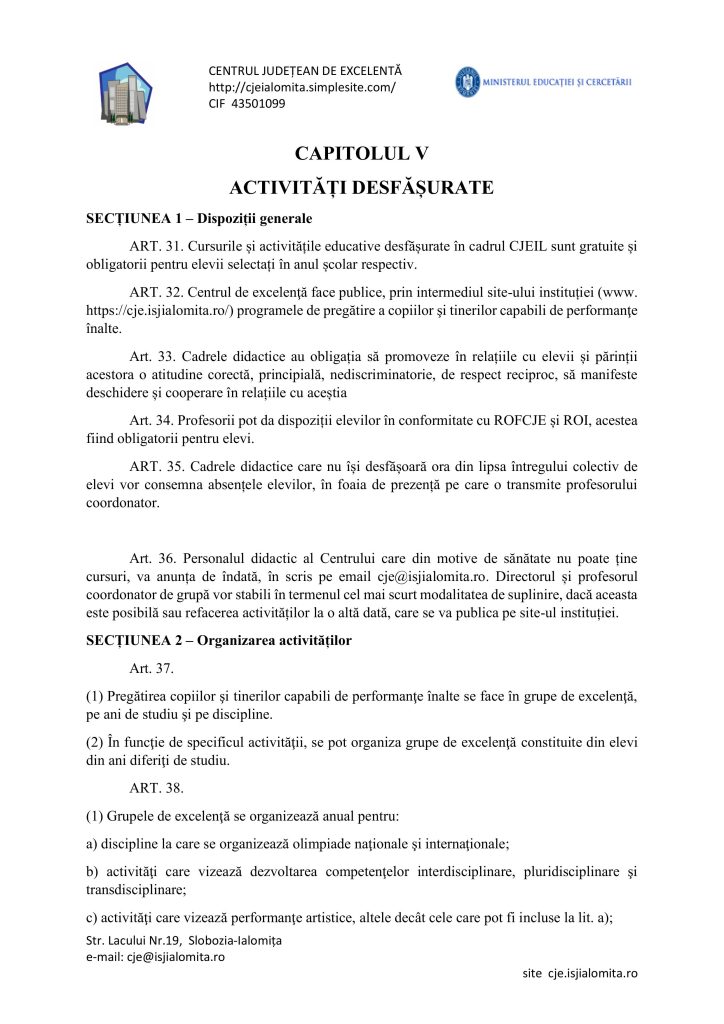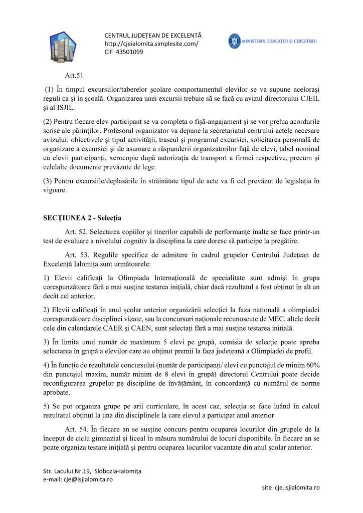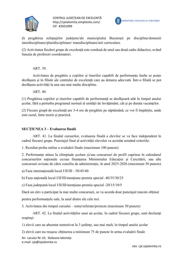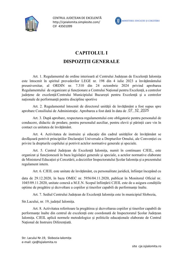 Regulamentul de organizare şi funcţionare a Centrului Judeţean de Excelenţă