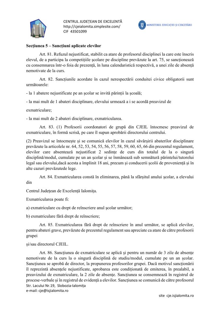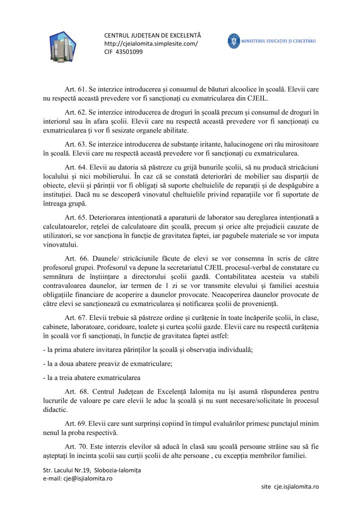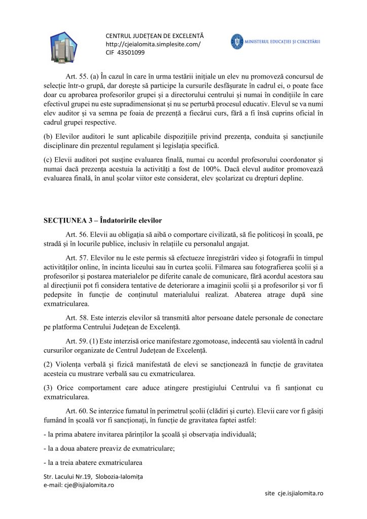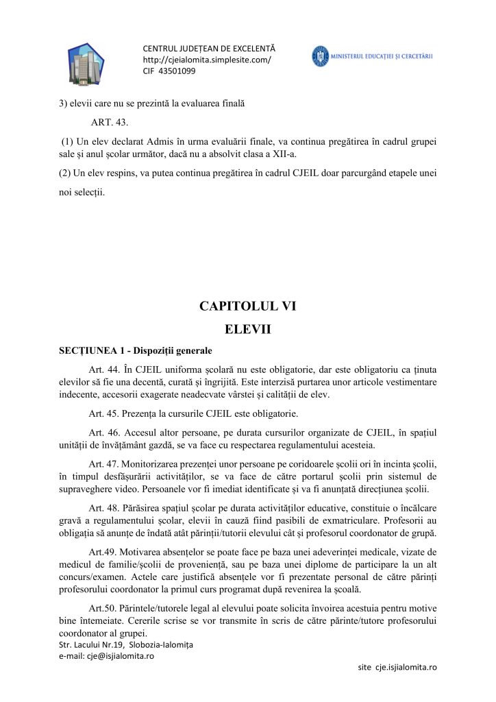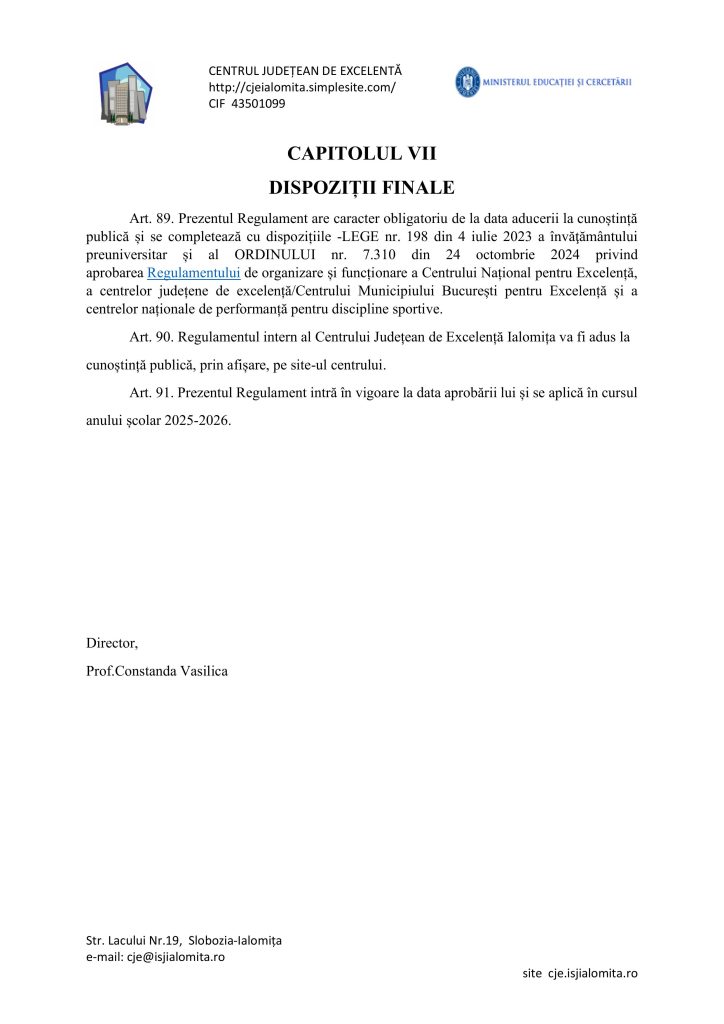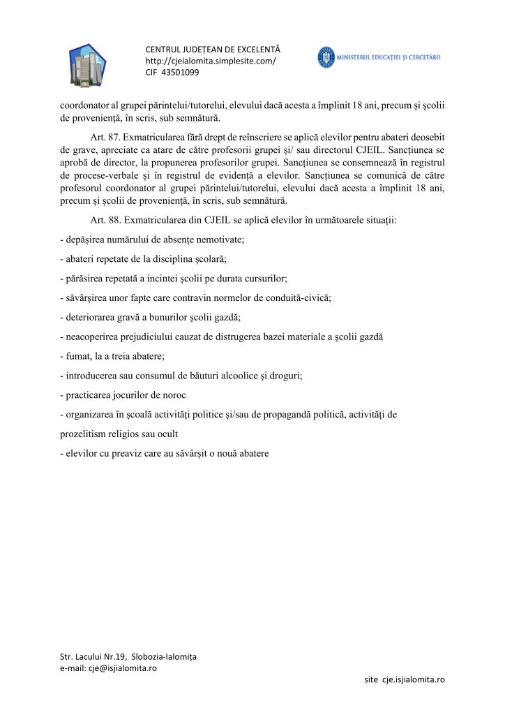 Regulamentul de organizare şi funcţionare a Centrului Judeţean de Excelenţă